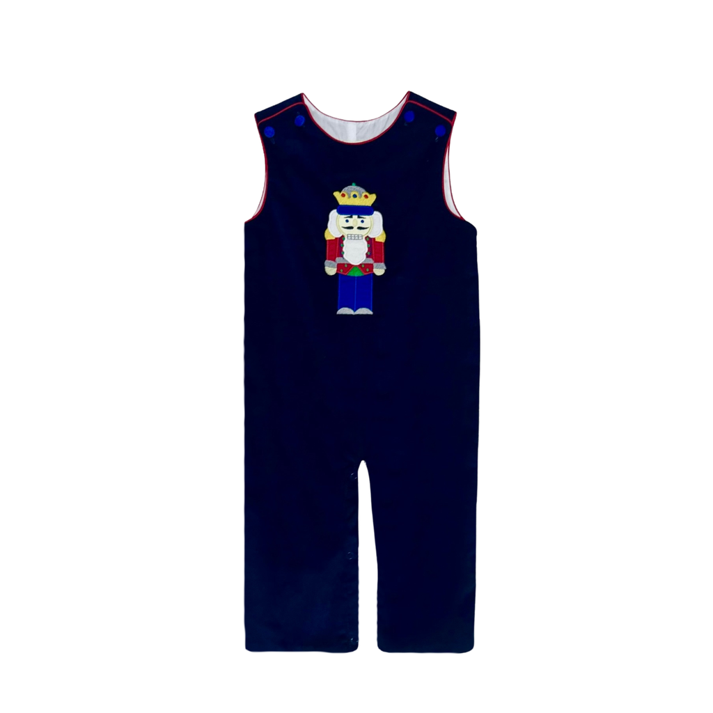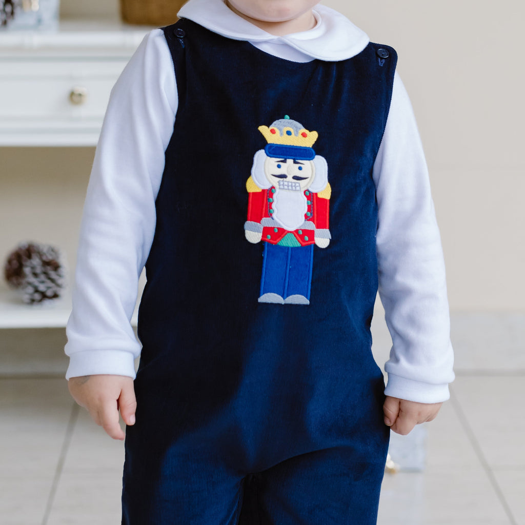 March into holiday fun! This soft navy corduroy longall with a charming Nutcracker appliqué is made for tiny toy soldiers and Christmas adventures.