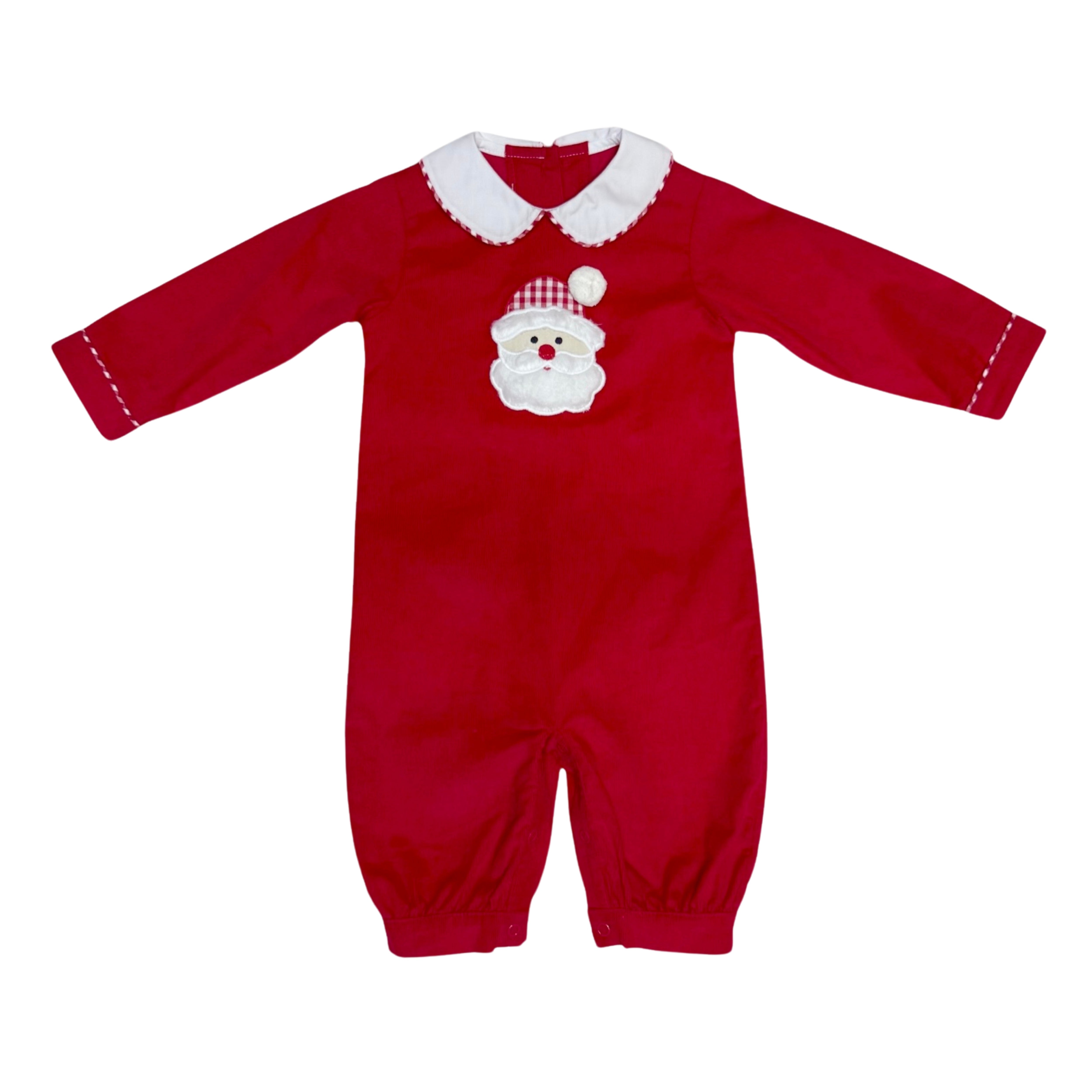 Santa-approved sweetness! This red cord bubble with a jolly Santa appliqué is made for cuddly mornings and merry little smiles.