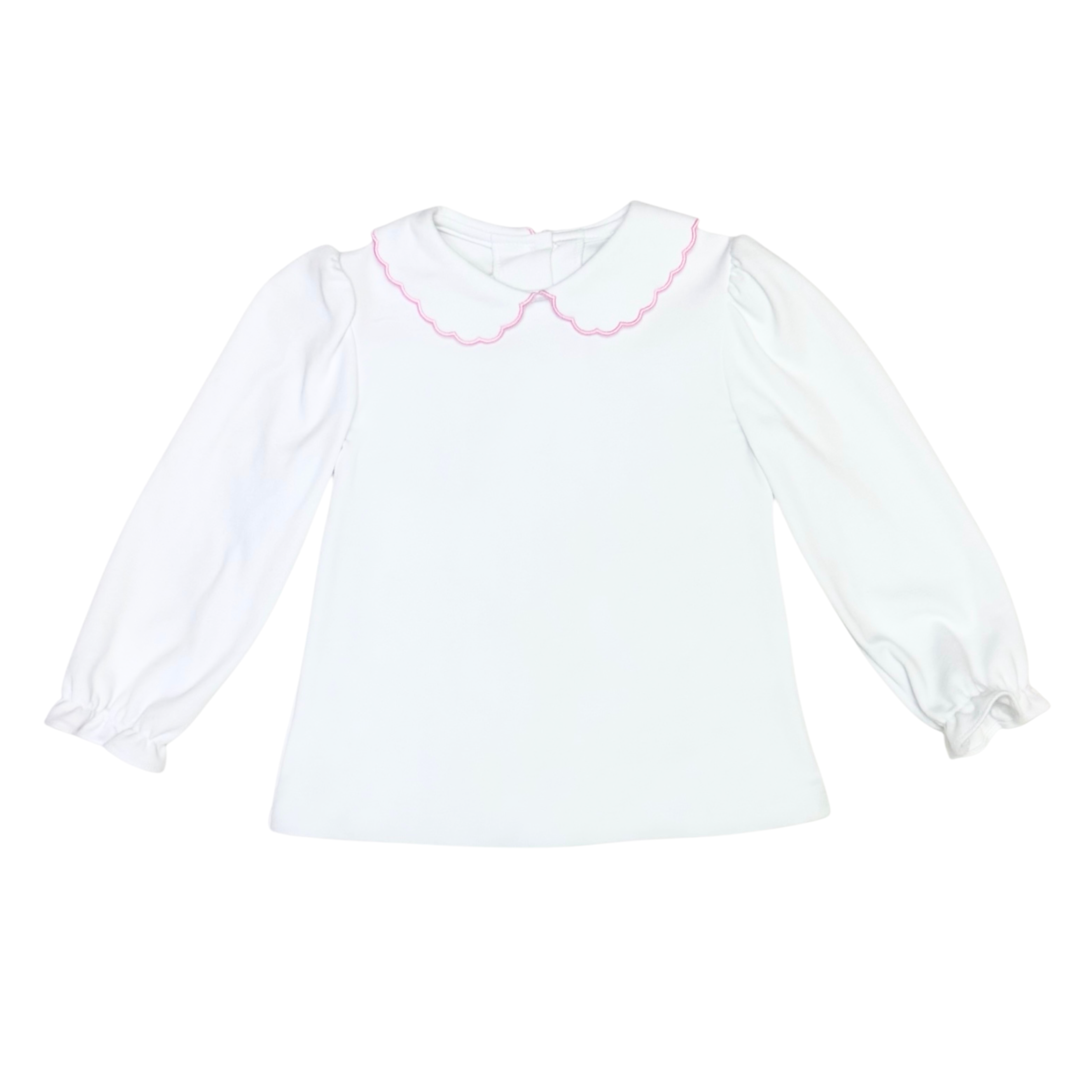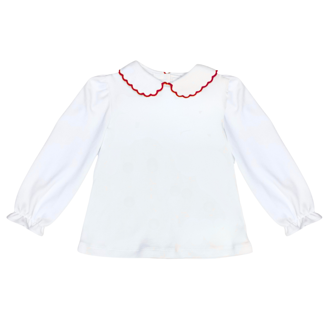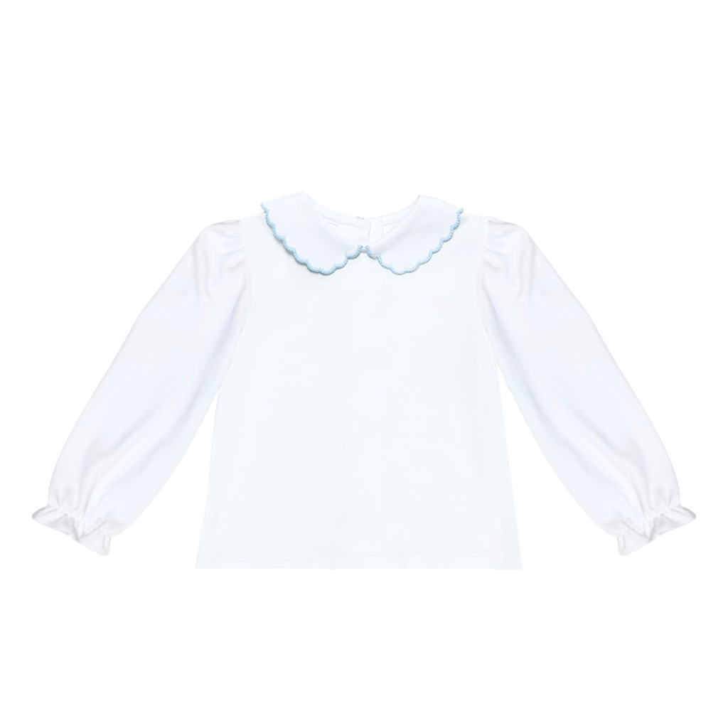The Kendall Collar Blouse features a classic collar enhanced with subtle, multicolored pipings for a stylish, refined look. Its lightweight fabric ensures comfort while adding a unique touch to your everyday wardrobe.