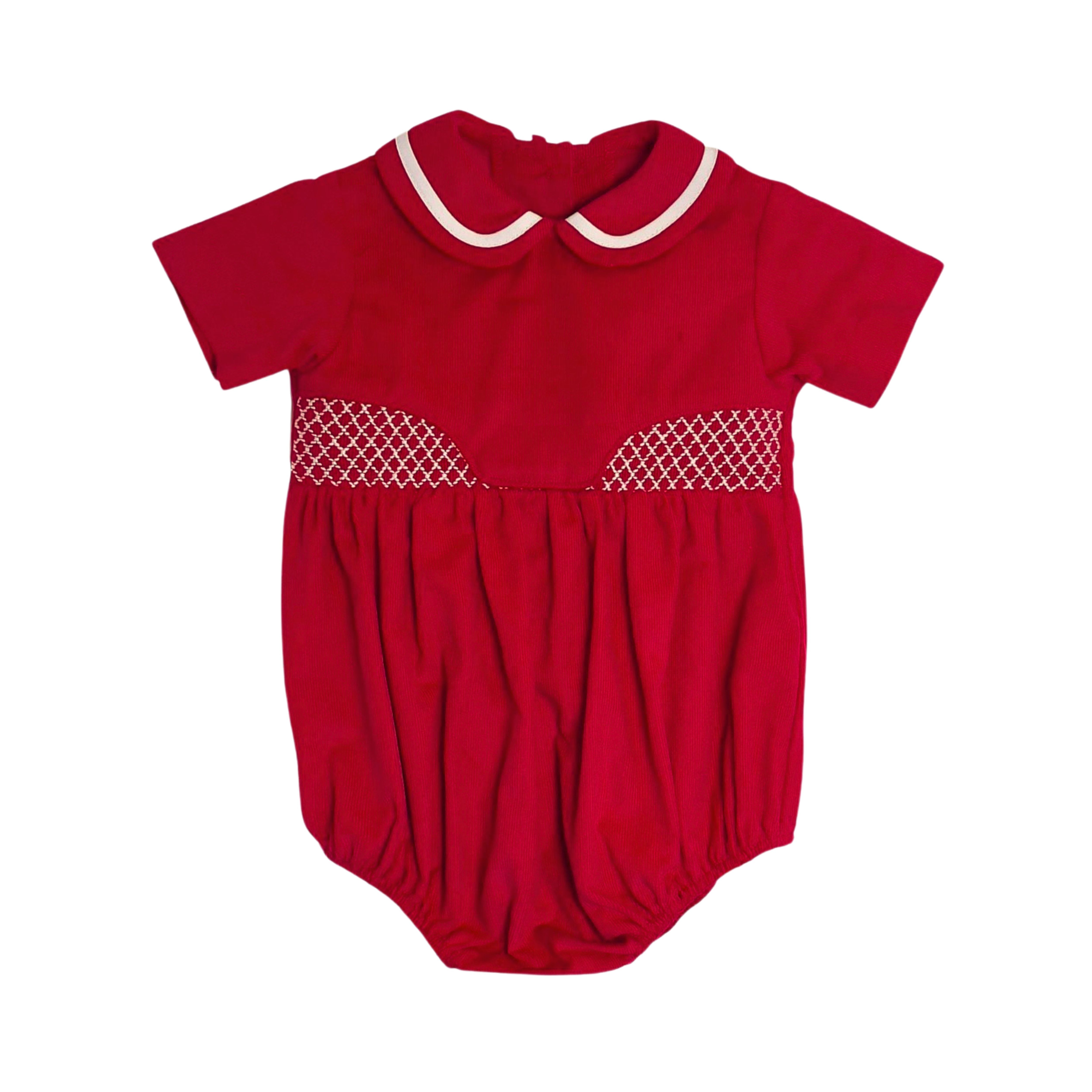 Smart and festive! This red cord bubble with tailored details brings polished Christmas charm to your little one’s holiday look.